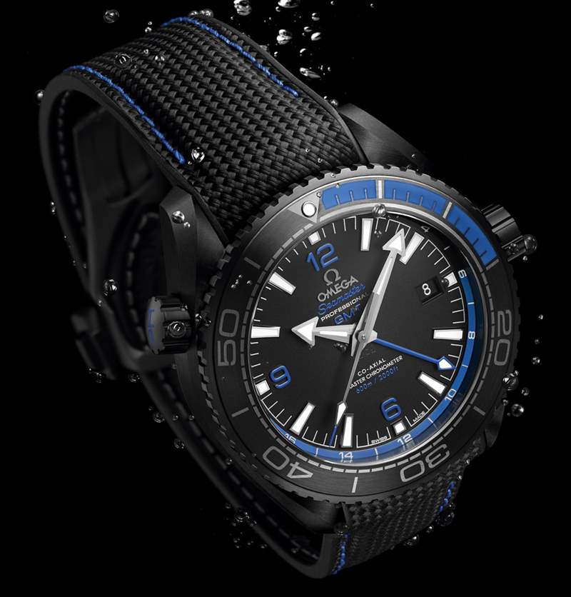 另一款海馬系列海洋宇宙600米45.5毫米至臻天文臺GMT「深海之黑」專業(yè)潛水表,其啞光黑色表殼為歐米茄采用改良工藝由整塊陶瓷精制而成,酷炫之余尤其地時尚。其單向旋轉(zhuǎn)表圈、24小時標識、GMT指針、阿拉伯數(shù)字時標乃至橡膠表帶上的縫線都點綴著藍色,恰如其分地揭示了其專業(yè)潛水表的特殊定位。設計元素,直接凸顯了該表的高科技含量,也讓它格外吸引眼球。