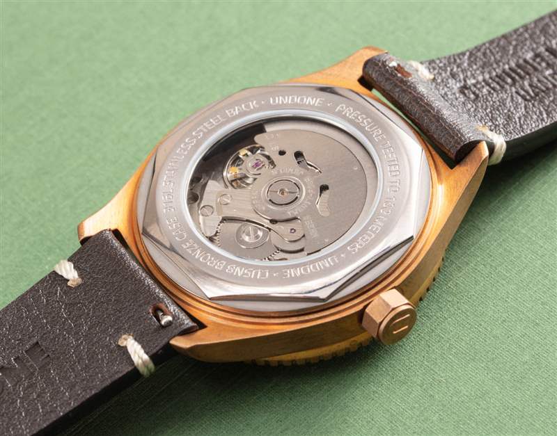 內(nèi)部是與手表的日本主題相匹配的日本機(jī)械機(jī)芯。通過(guò)底蓋水晶可以看到精工儀器口徑 NH35A 自動(dòng)機(jī)芯。從風(fēng)格和價(jià)值的角度來(lái)看,Undone 是目前行業(yè)的領(lǐng)導(dǎo)者之一,其多產(chǎn)的創(chuàng)造力似乎沒(méi)有界限。當(dāng)然,如果該品牌可以放慢發(fā)布周期,讓粉絲更好地了解 Undone 正在做什么,那就太好了,但它確實(shí)給你的印象是 Undone 能夠同時(shí)滿足多種類型的消費(fèi)者——大多數(shù)手表品牌多年來(lái)一直在努力做的事情。