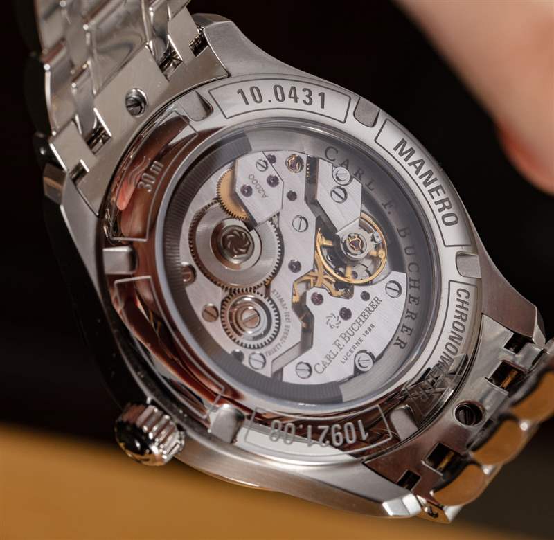 精鋼表殼經過精美拋光處理,質量上乘,適合這個非入門級價位的時計。Carl F. Bucherer 生產較便宜的正裝手表,但他們沒有內部機芯,就像這里的情況一樣。機芯本身就是 Carl F. Bucherer CFB A2050,這是 A2000 機芯系列的特殊表盤。A2000 是繼創新型 A1000 機芯之后的第二代機芯,A1000 在十多年前作為第一款采用外圍自動轉子的現代機芯問世。廣告訊息廣告信息結束