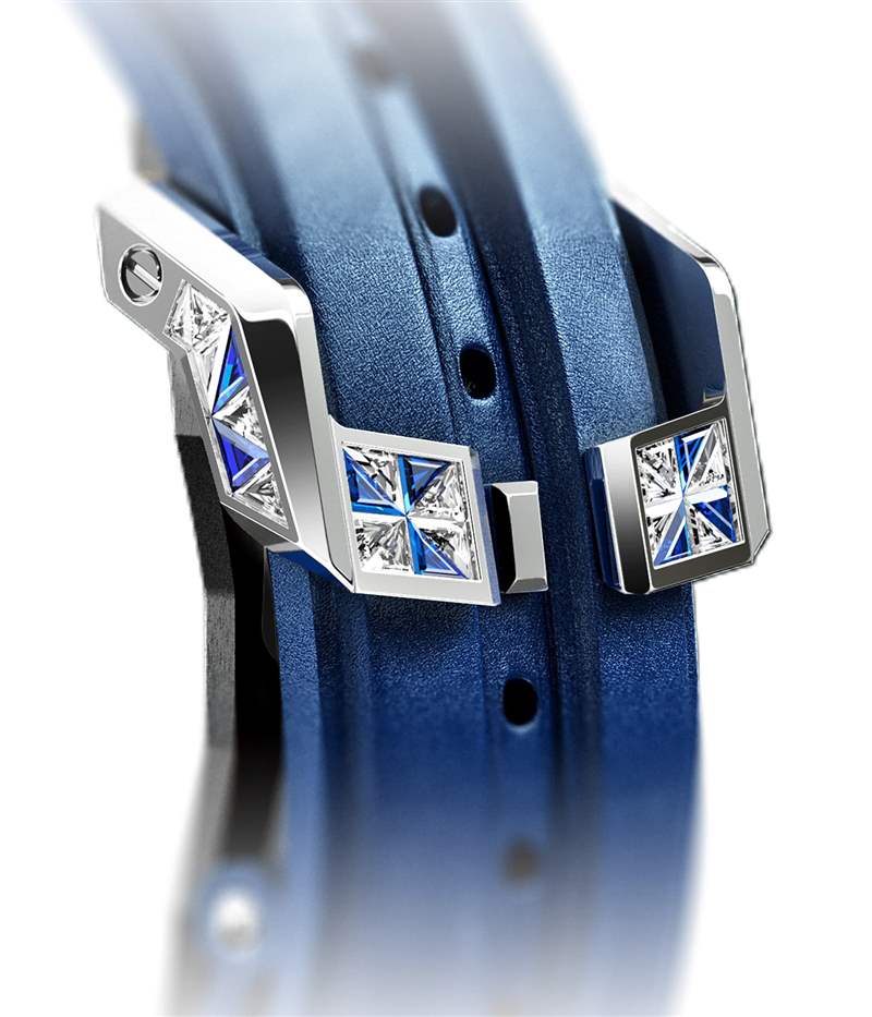 當(dāng)自豪的瑞士制表師稱(chēng)他們的行為為“瘋狂”時(shí),我總是覺(jué)得很迷人。這意味著他們知道結(jié)果有點(diǎn)……有爭(zhēng)議。對(duì)他們來(lái)說(shuō),這樣一款時(shí)計(jì)的成就與它的社會(huì)地位價(jià)值或財(cái)富吸引力無(wú)關(guān)。相反,重點(diǎn)是選擇、切割和鑲嵌許多幾何形狀的寶石所需的難以置信的復(fù)雜性。不僅如此,除了表殼和表帶之外,手表的表盤(pán)和機(jī)芯上還鑲嵌了鉆石。廣告訊息廣告信息結(jié)束