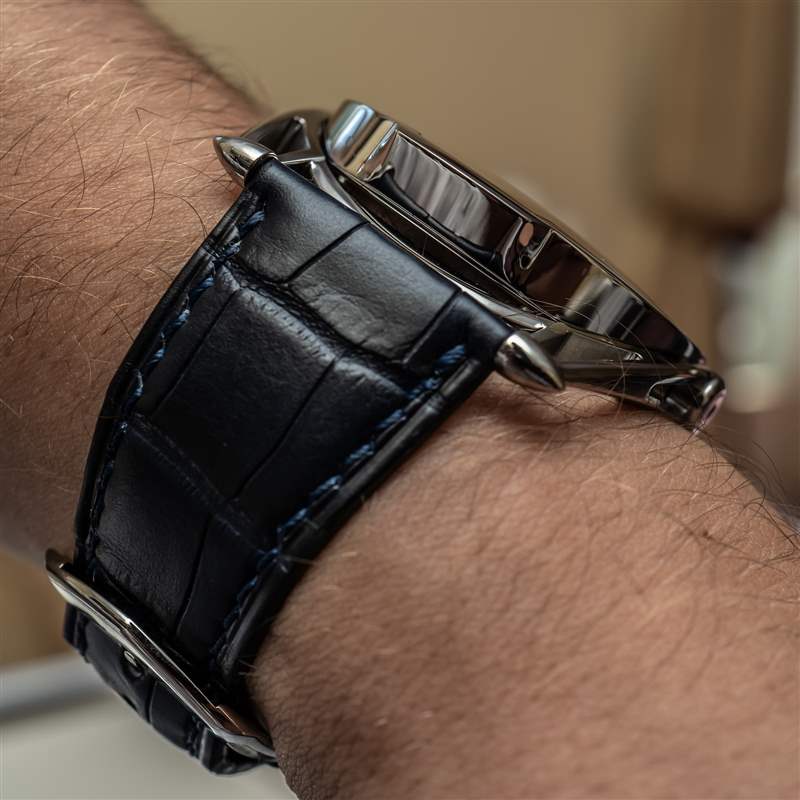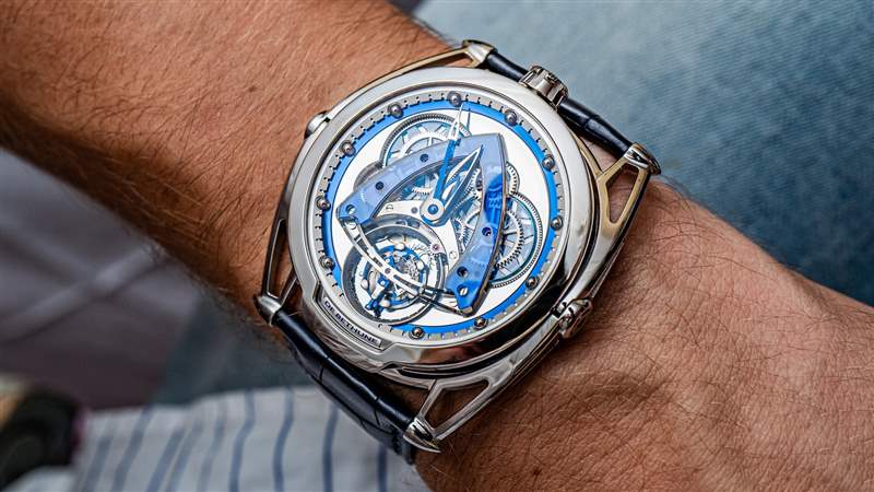 當(dāng)我談到“不在乎”時(shí),我的意思是做一些事情,例如將“鋼”放在手表的標(biāo)題中,而鋼在手表的整體金屬或材料構(gòu)成中所占的比例相對(duì)較小?;蛘咧皇窃谛侣劯逯谢乇苤匾男〖?xì)節(jié),例如詳細(xì)說明手表有多大(它是 43 毫米寬和 9.8 毫米厚)。我很確定 De Bethune 不會(huì)在意手表的尺寸。他們制作適合自己運(yùn)動(dòng)的表殼,就 DB28 而言,它如此知名的一個(gè)原因是有助于其環(huán)繞包裹的鉸接凸耳。這種“舒適表耳”系統(tǒng)實(shí)際上是為 DB28 Steel Wheels Sapphire Tourbillon 重新改進(jìn)的,表明這與 De Bethune 十年前首次亮相的 DB28 表殼不同。廣告訊息廣告信息結(jié)束