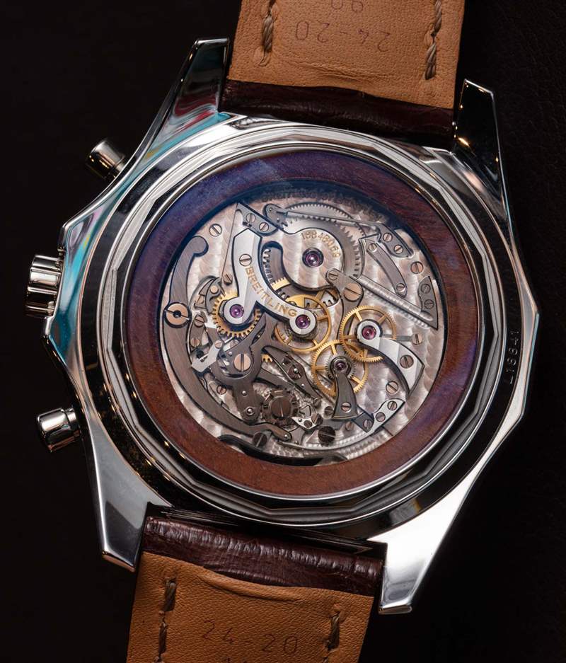 該機(jī)芯被稱為百年靈 18B 型機(jī)芯。它不是百年靈生產(chǎn)的,但很可能在瑞士制表業(yè)的傳統(tǒng)心臟之一附近。該機(jī)芯在形式上非常經(jīng)典,在裝飾和執(zhí)行上都非常優(yōu)雅。雖然在技術(shù)上沒有創(chuàng)新,但該機(jī)芯在外形上具有吸引力,并將陀飛輪和計(jì)時(shí)碼表結(jié)合在一個(gè)手動(dòng)上鏈機(jī)芯中。該機(jī)芯還有一個(gè)日期表盤。計(jì)時(shí)碼表也只能運(yùn)行 15 分鐘。這是一種相當(dāng)罕見的表盤布局,有助于為這款腕表增添稀有性和古怪性。也許計(jì)時(shí)碼表最古怪的部分是秒針每 30 秒繞表盤移動(dòng)一次,而不是每 60 秒。這為表盤的外圍提供了一組獨(dú)特的標(biāo)記。這個(gè)想法是為了幫助在 3Hz 頻率移動(dòng)中更好地讀取幾分之一秒(此處為 1/6 秒精度)。真的很難不喜歡這樣奇怪、復(fù)雜的東西。陀飛輪機(jī)芯也很少見,18B 型機(jī)芯獲得了 COSC 天文臺(tái)認(rèn)證(與大多數(shù)其他百年靈手表一樣)。