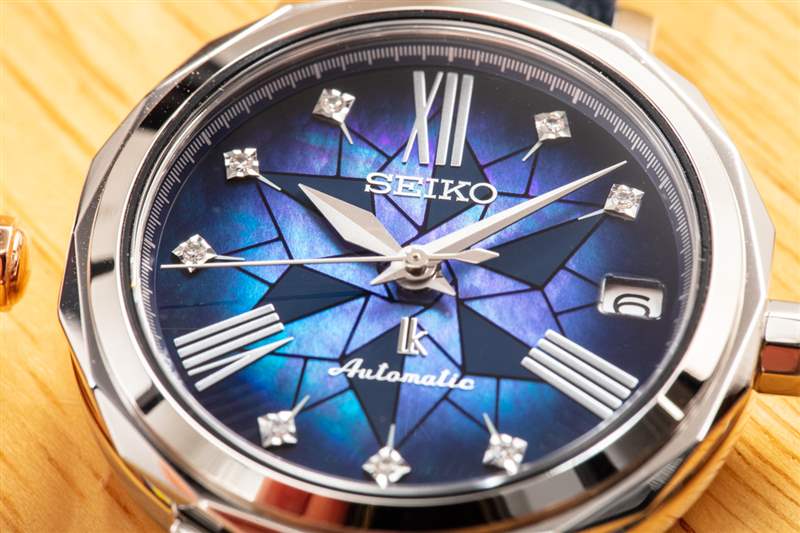 精工在 SPB1XX Lukia 手表的表盤上做得很漂亮,這些表盤都是珍珠母的。底座上印有珍珠母貝表盤,賦予表盤復(fù)雜藝術(shù)鑲嵌的外觀(其幾何形狀以及鑲鉆時(shí)標(biāo)),這就是我之前所說的與表殼設(shè)計(jì)相協(xié)調(diào)的東西。看看印刷(和彩色)珍珠母 Lukia 手表在紅色、白色、藍(lán)色、金色和粉紅色中的外觀是非常有趣的。在我看來,他們看起來很有吸引力。