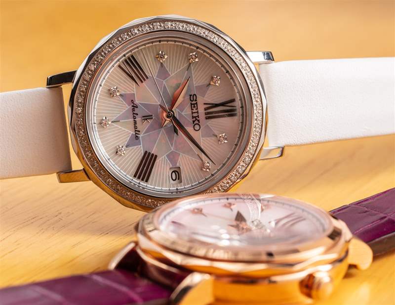 每個(gè)表殼的寬度為 34.8 毫米,這與您想要的手表一樣大,其比例仍然具有內(nèi)在的女性氣質(zhì)。這款手表相對(duì)較薄,但考慮到內(nèi)部的機(jī)械自動(dòng)機(jī)芯,它不會(huì)像精工最纖薄的石英表那么薄。在一般女性的手腕上,這個(gè)近 35 毫米寬的表殼尺寸足夠大膽,但又不會(huì)太大,以至于在視覺上過于強(qiáng)烈或被誤認(rèn)為是男性化的東西。