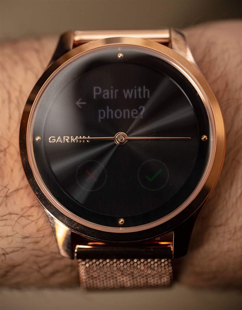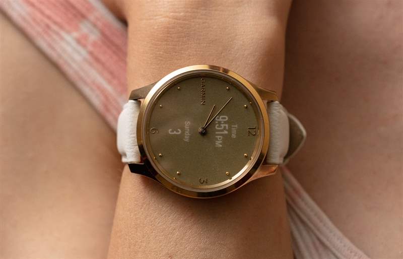 在手腕上,Vivomove 在風格和吸引力上都應該看起來像傳統時計。Garmin 盡最大努力將其設計成一種更像傳統時尚手表的形式,而不是遠足設備。當然,對于有興趣在其職業或社交服裝中添加智能手表的女性佩戴者來說,Vivomove Luxe 是一個不錯的選擇。也就是說,或多或少是 Garmin 的賣點,即讓人們能夠跟蹤他們的運動和活動,而不是通過他們選擇的手表立即宣布這一事實。