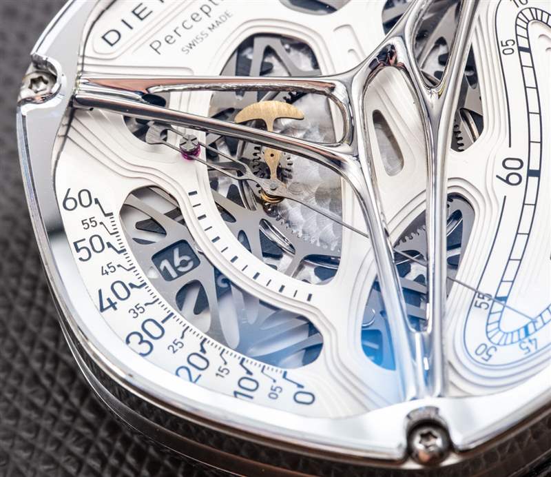 當 Emmanuel Dietrich 設計 Perception 時,他的目標不僅是探索他對“生物形態”工業設計的興趣,而且更具體地玩弄時間的顯示方式。值得注意的是,手表設計領域的最高使命之一是創造一種新穎的,或者至少是有用的指示時間的方式。標準的兩個或三個中央指針表盤是行業規范,一些特別受人尊敬的設計師喜歡避開它,以求與眾不同,最好是美觀。Perception 本身并沒有開辟新天地,但它確實在一個完整的包中包含了兩種不常見的指示時間的方式,最終既“令人驚嘆又美妙”又“狂野而怪異”。廣告訊息廣告信息結束