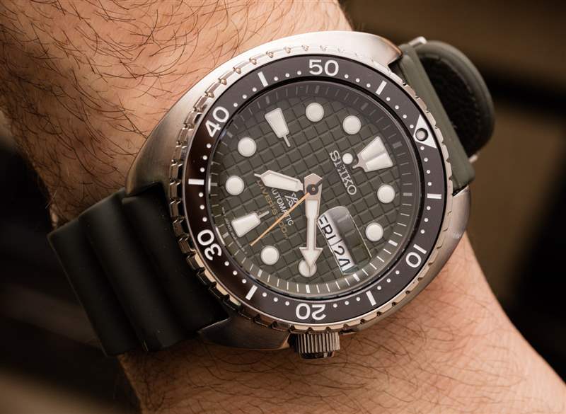 精工在全球的更大戰略是逐步提高其許多核心型號的價格,但它預計消費者不會在手表質量和款式同步提高的情況下咬牙切齒。精工吸取了重要的一課,即許多手表愛好者對裝飾工具手表情有獨鐘。我的意思是其他簡單而堅固的實用手表,充滿時尚的色彩、紋理或材料。在很多方面,這正是 Prospex Turtle SRPE05 和 SPRE07 時計的全部意義所在。它們適合日常穿著、潛水或只是遇到麻煩。也就是說,有吸引力的綠色或藍色表盤選項有助于這些潛水員更好地與更昂貴的歐洲時尚潛水員競爭,這些潛水員通常價格更高,而且表盤和表殼質量通常不高。