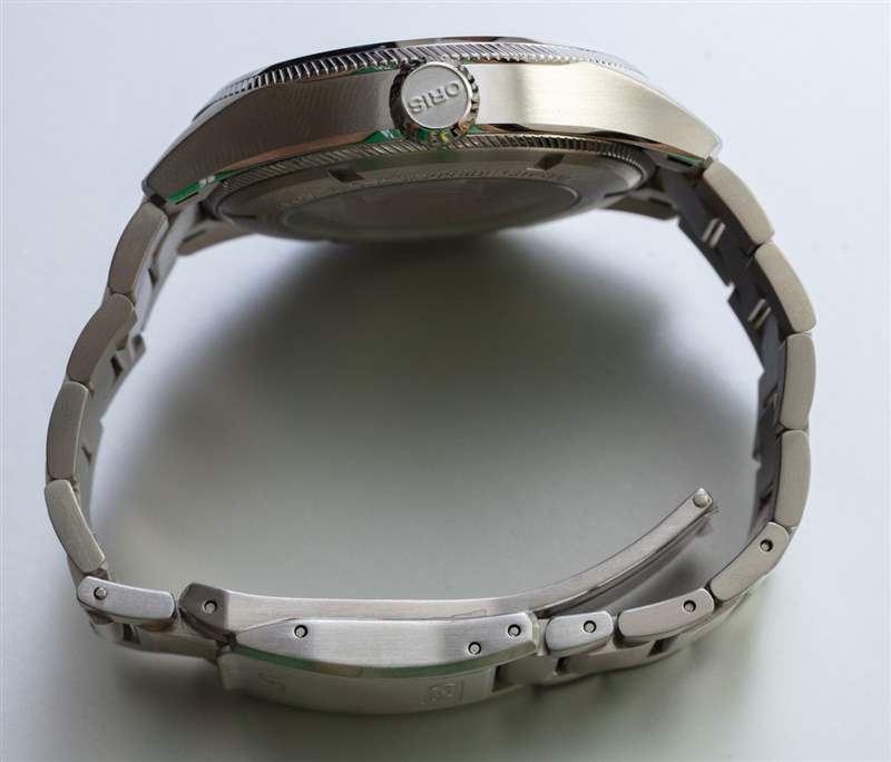 表盤發光體很好,雖然表盤沒有太多裝飾風格,但它是一款出色的通用保守考究風格和運動手表。灰色作為表盤顏色是一個明智的選擇,因為該顏色與大多數服裝非常匹配。我很欣賞 Oris 如何使用漂亮的圓頂藍寶石水晶,但在我看來,這款和許多其他 Oris 手表可以受益于更多的 AR 涂層。雖然考慮到表盤的清晰,易讀性并不是真正的問題,但減少眩光將進一步提升這款和其他 Oris 手表的外觀。