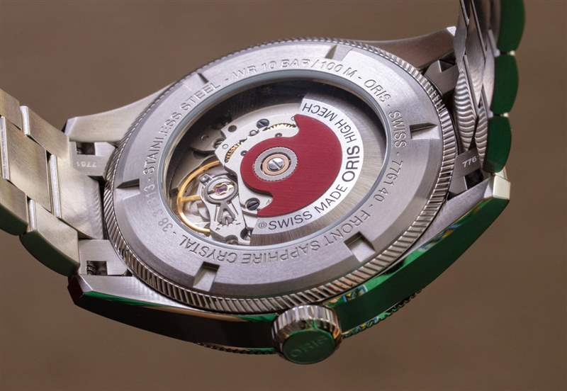 手表內部是 Oris 所謂的 751 型自動機芯。它是瑞士制造的 Sellita SW220-1 底座,配有標志性的紅色 Oris 自動轉子。展示底蓋提供了運動的視圖,盡管基礎運動的裝飾更精美會很好(因為它會與 Oris 似乎與 ProPilot Big Date 鐘表系列一起使用的更時尚的主題。機芯以 4Hz 頻率運作,動力儲存 38 小時。