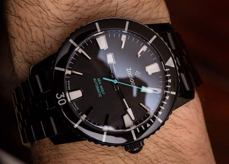 目前,一塊全黑的 Zodiac Super Sea Wolf 53 Compression Automatic 手表只比同樣型號(hào)的天然鋼表殼貴 100 美元。正如我所說,總體而言,這是一個(gè)相當(dāng)不錯(cuò)的價(jià)值。