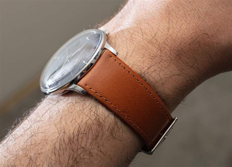 水晶確實會產生一些眩光,但通過堅固且尺寸合適的太妃指針和索引式時標保持易讀性。對于那些喜歡外觀但不尋求日歷手表的人來說,基本上類似的手表可作為三針或計時碼表變體。