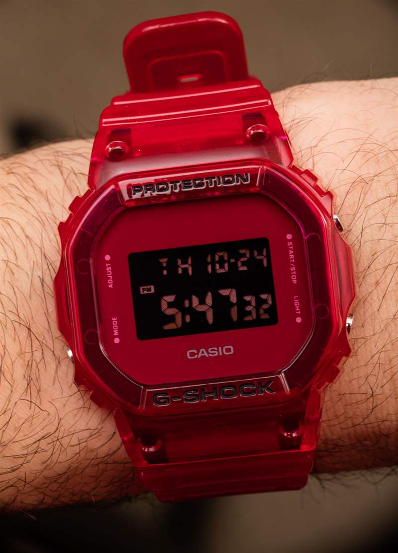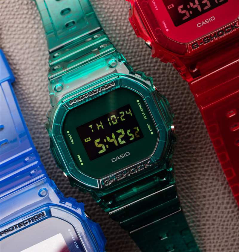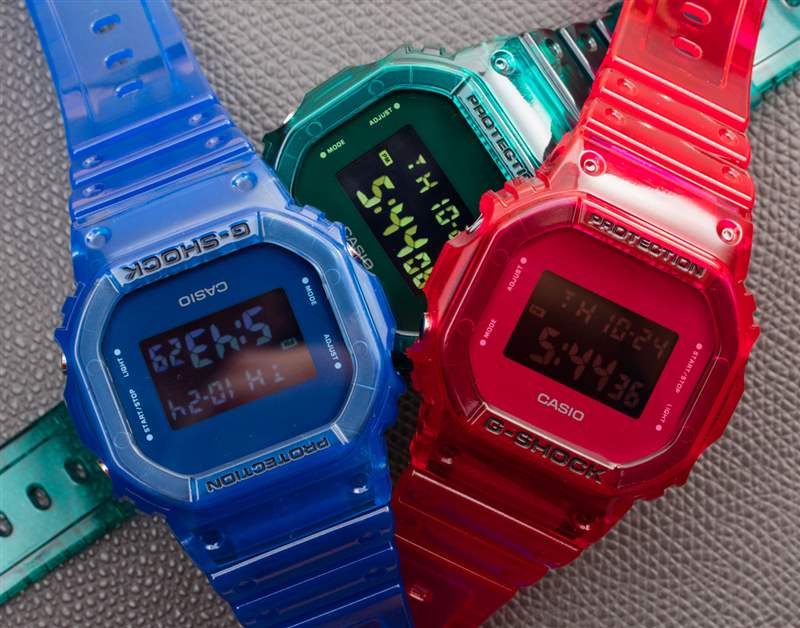 幾年前,我注意到卡西歐 G-Shock 手表的售后市場外殼是完全透明的。我很喜歡這個想法,并注意到卡西歐自己似乎并沒有真正制造完全透明的手表——盡管他們過去制造的手表很清晰。我購買了其中一個售后市場案例只是為了看看質量如何,因為我對此有所保留。果然,幾個月后透明塑料變黃了。似乎卡西歐的想法和我一樣,從那時起,我們看到了許多不同的“果凍”G-Shock 模型發布。卡西歐實際上確實有一些完全透明的 G-Shocks,但他們也喜歡玩有趣的顏色,當與半透明的外殼結合時,會產生美麗而有趣的效果。