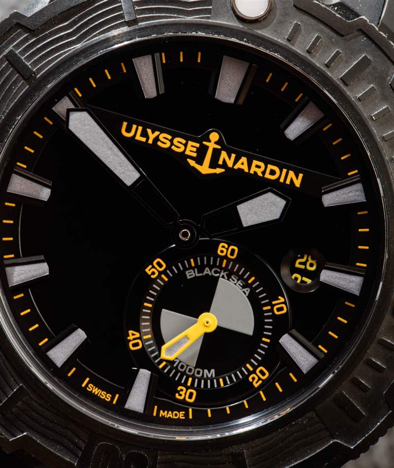 表盤上有趣的小細節之一是小秒盤上的“黑海”字樣。除了美國海軍海豹突擊隊喜歡黑色裝備、穿黑色并且在行動中都是關于隱身的事實之外,該聲明并沒有真正提及任何事情。因此,雅典表設計部門將“黑海”放在了表盤上——這似乎很合適。