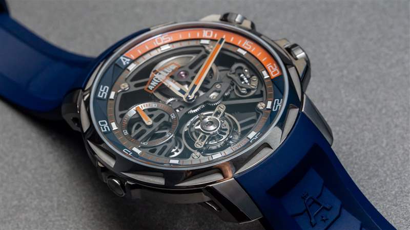 Angelus U51 表殼值得在更多型號中使用,我相信 Angelus 會慢慢玩轉 U51 Tourbillon Diver 的不同變體,除了這款玩具般的藍橙款或藍黃款(稍有不同)之前的擋板)。它是該系列的絕佳選擇,因為明亮而運動的色彩體現了 Angelus 所追求的運動手表主題。工具表愛好者無疑會發(fā)現 U51 Tourbillon Diver 存在問題,即使它確實滿足其防水要求。相反,人們應該將 Angelus 歸入與 MB&F 或 Urwerk 相同的類別,作為可穿戴的“鐘表藝術品”。Angelus U51 Tourbillon Diver 可能更接近傳統(tǒng)時計,而不是純粹美學上的異國藝術品,但它仍然有一個引人入勝的故事,這將有助于它贏得它應得的未來崇拜地位。