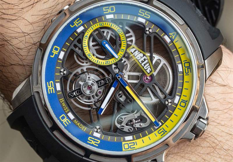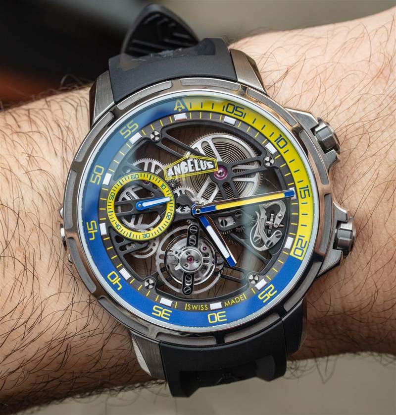 如果我可以對 U51 Tourbillon Diver 進行任何更改,那將有助于提高時針和分針的可見度。作為一款表盤上也有許多功能的鏤空手表,易讀性已經受到了攻擊。加上各種重疊的顏色和表面紋理,表盤一目了然。易讀性是運動手表的一個真正問題,但對于 U51 Tourbillon Diver 的可取性來說是一個小問題。這只表是如此有趣,如此有限,并且對于其他手表收藏家來說有著如此精彩的故事,我真的不能認為表盤是這款手表不會被社區(qū)充分慶祝的原因。然而,這確實意味著 Angelus 有能力為未來的版本調整設計,即使產品的創(chuàng)造者已經不在公司了。