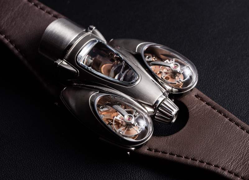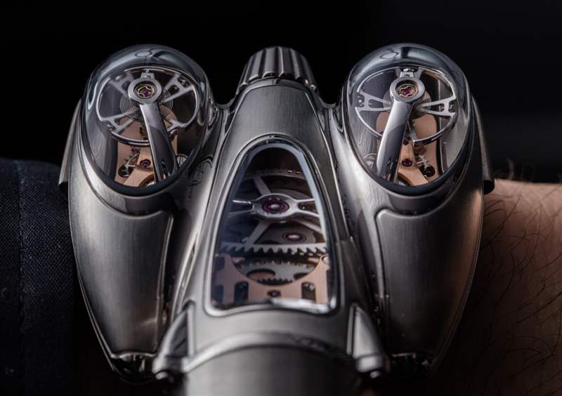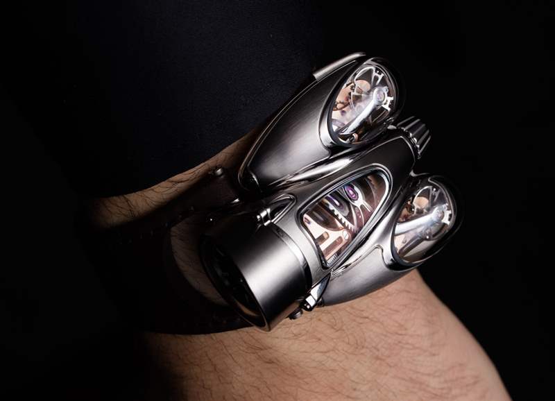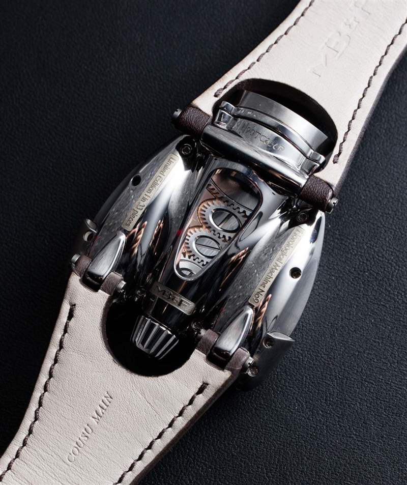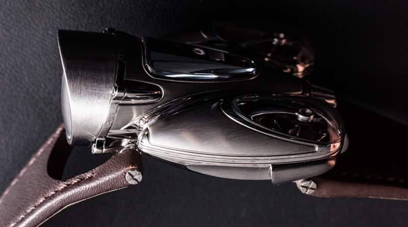 HM9 Flow 機(jī)箱的俯沖設(shè)計顯然受到了一代飛機(jī)和汽車的啟發(fā),這些飛機(jī)和汽車的形狀在風(fēng)洞中得到了完善,以增強(qiáng)空氣動力學(xué)性能。手表確實(shí)不需要空氣動力學(xué)特性,但如果你擁有一輛具有這種外觀的老式汽車,至少你可以擁有一款非常兼容的時計。我碰巧認(rèn)為表殼曲線既漂亮又有趣,甚至優(yōu)雅,盡管 MB&F 沒有讓產(chǎn)品看起來很女性化。