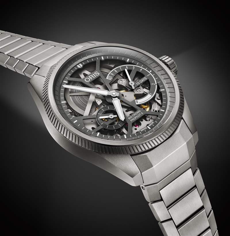 PPX 是一款吸引人、清晰易讀、技術有趣且舒適的手表。全鈦表殼和可用表鏈(也有表帶版本)采用 5 級鈦金屬設計;表殼寬 44 毫米,防水深度達 100 米。渦輪式表圈是從 Oris ProPilot 系列中借來的,您可以在 PPX 上看到對其他 Oris 美學的致敬。然而,它確實有一個全新的表殼和表鏈(連同機芯),所以它是完全不同的。