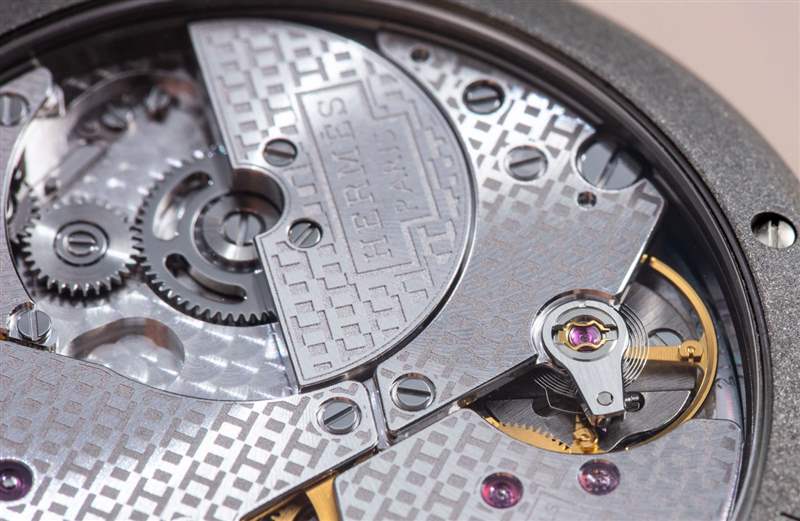 為了使 Slim Titanium 成為手表愛好者的手表,愛馬仕繼續使用其與 Vaucher 合作生產的功能強大的瑞士制造 H1950 自動機芯。基于微型轉子的自動機芯特別薄,只有 2.6 毫米。它以 3Hz (21,600 bph) 的頻率運行,具有 42 小時的動力儲存。透過藍寶石水晶底蓋窗可以看到機芯最顯眼的一面是帶有一些漂亮的裝飾元素,它覆蓋了大部分機芯橋板表面的重復“H”(愛馬仕)圖案。愛馬仕稱這是 Hs 的“灑”……