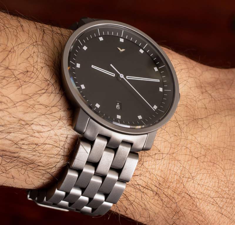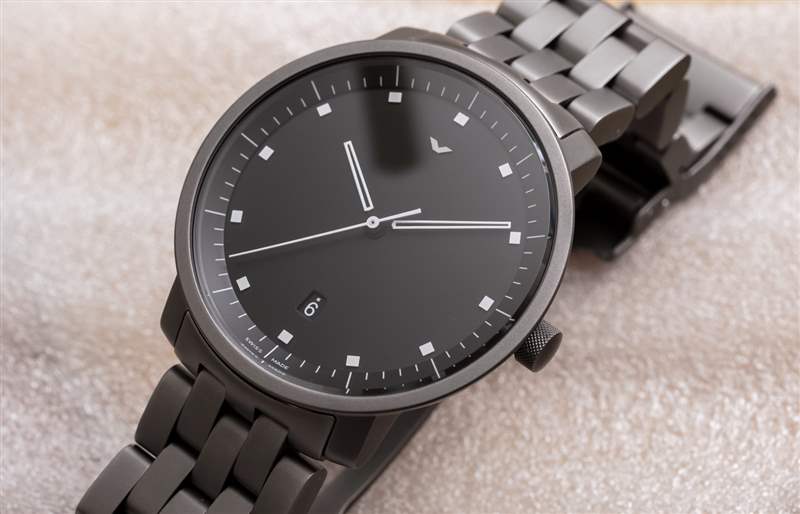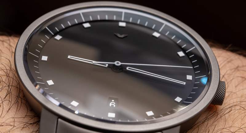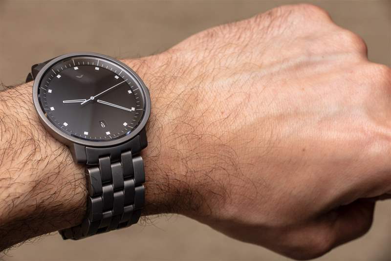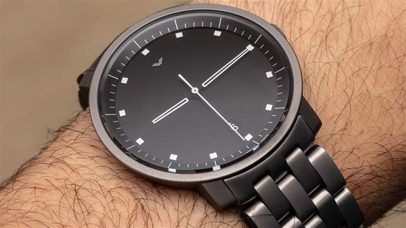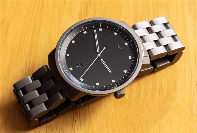 還必須考慮價格,但總的來說,我認(rèn)為可以肯定地說 Ventura V-Matic EGO 遠(yuǎn)勝于典型的 Kickstarter 時計。也就是說,我懷疑 Ventura 是否會依賴 Kickstarter 來購買太多(如果有的話)未來的手表,因?yàn)閾?jù)我了解,該品牌或多或少已經(jīng)建立起來。質(zhì)量方面,您在匹配的手鏈上有一個深色啞光鈦金屬表殼。Ventura 為 V-Matic EGO 提供黑色和銀色表盤,以及配套的表鏈或黑色皮革表帶。銀色表盤很有趣,因?yàn)樗谋砻嫣幚砗退{(lán)色指針和時標(biāo)。它可能是節(jié)目中的明星,但我想看看黑白表盤 V-Matic EGO,因?yàn)樗屛蚁肫鹆宋易蛱烀篮没貞浀?Ventura。
