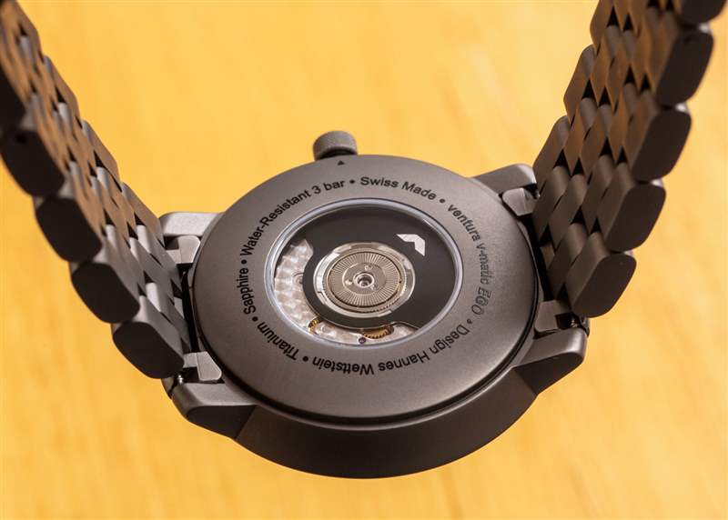 說到日期輪,Ventura V-Matic EGO 內(nèi)部的機(jī)芯是瑞士制造的 ETA 2892-A2 自動機(jī)芯,這是一款相當(dāng)不錯的自動機(jī)芯,擊敗了更常見的 ETA 2824,尤其是在它的薄度方面。您可以通過底蓋窗口查看機(jī)芯。我真的很喜歡佩戴 Ventura V-Matic EGO,因?yàn)樗哂杏篮愕娘L(fēng)格和定位為“設(shè)計愛好者的產(chǎn)品”。它既舒適又易于閱讀,對于今天的許多新手手表愛好者(他們往往經(jīng)常參加 Kickstarter 鐘表活動)來說,享受 Ventura V-Matic EGO 可能比最初對它感到興奮更容易。如果有足夠多經(jīng)驗(yàn)豐富的手表愛好者了解并支持文圖拉的復(fù)興,那么未來幾年它可能會非常光明。今天的 Ventura 現(xiàn)在已經(jīng)證明它可以重現(xiàn) Ventura 過去的美學(xué)魔力;問題仍然是他們是否對其未來有遠(yuǎn)見。