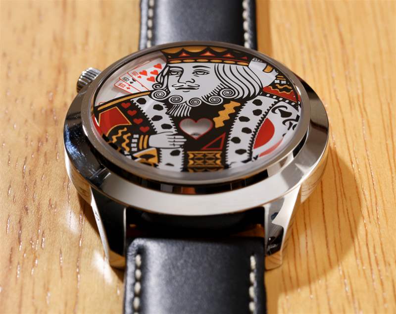 King 手表的核心(沒有雙關語)是一款跳時時計,通過圓盤切割讀取分鐘,看起來就像移動的撲克牌。King手表的美學主題顯然是無處不在的撲克牌的人物藝術。Mr. Jones Watches 正確地展示了一種如此常見的視覺效果,與游戲和追求的概念如此相關,而且在時尚界很少使用,以至于將撲克牌王戴在手腕上的結果感覺有點新奇。現在,眾所周知,奢侈手表行業生產的手表(我很遺憾地說)似乎或多或少地慶祝賭博。這與慶祝撲克牌或游戲用具的藝術相反。我個人(不是一個賭徒)對“賭場主題”手表不感興趣,廣告訊息廣告信息結束