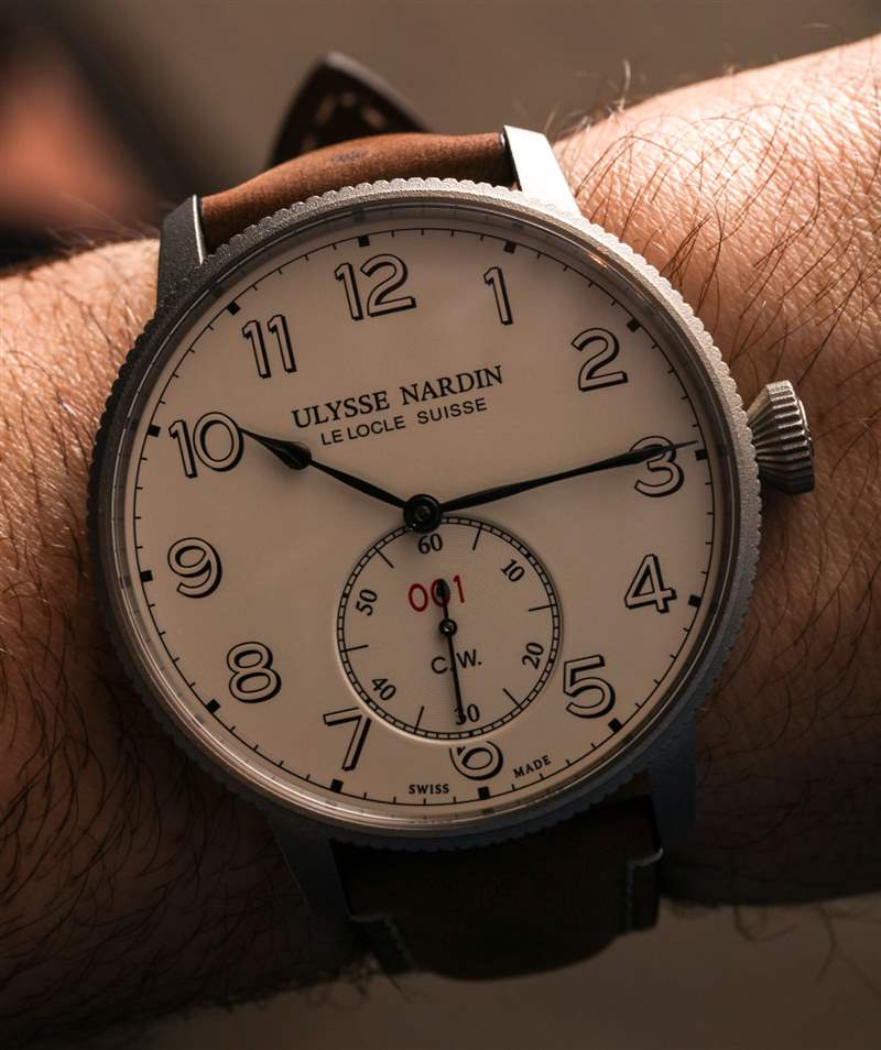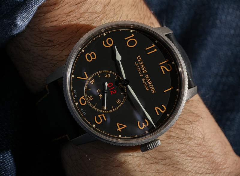 這些限量版腕表的意義不僅在于打造一款符合視覺主題的腕表,還在于強(qiáng)調(diào)實(shí)??際航海計(jì)時器需要非常準(zhǔn)確的事實(shí)。手表表盤上的“CW”首字母代表“Chronometer Watch”,表殼內(nèi)部是內(nèi)部制造且性能良好的Ulysse Nardin機(jī)芯UN-118。這款 4Hz 自動機(jī)芯擁有 Diamonsil 擒縱機(jī)構(gòu)(金剛石涂層硅,增加了硅的耐用性)和卓越性能的聲譽(yù),實(shí)際上被剝離了一點(diǎn),用于海軍陸戰(zhàn)隊(duì) Torpilleur,只有時間包括輔助秒盤. 我的意思是,該機(jī)芯還提供動力儲存指示器和日期復(fù)雜功能,作為美學(xué)練習(xí)而被排除在表盤之外。